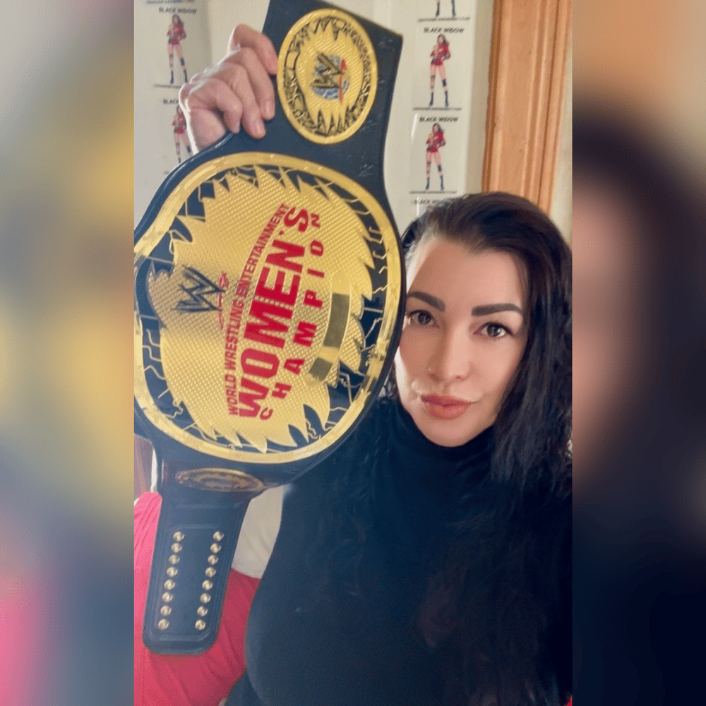 Signed Replica WWE Women's Championship Belt + 2 Free Signed 8x10s + Free Signed WWE Trading Card